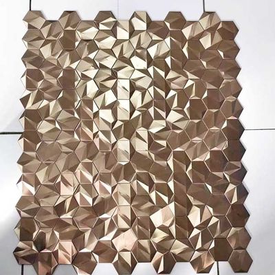τρισδιάστατος Hexagon αυξήθηκε χρυσό κεραμίδι μωσαϊκών ανοξείδωτου χρώματος για τη διακόσμηση τοίχων