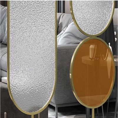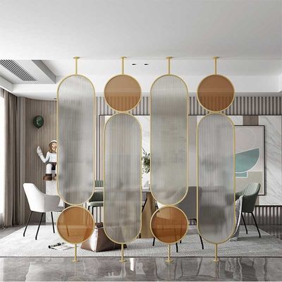 Χρυσό χρώμα από ανοξείδωτο χάλυβα Διαχωριστικό οθόνη Στρογγυλό σχήμα Σωλήνα μαλλιών με καλλιτεχνικό γυαλί Διακόσμηση καθιστικού