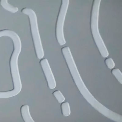 Τα χαραγμένα μοτίβα δημιουργούνται με την επιλεκτική εφαρμογή ενός προστατευτικού ανθεκτικού σε οξέα φιλμ σε ορισμένες περιοχές και την χαραγή οξείας στις μη προστατευμένες περιοχές.αλλάζει το χρώμα σε ένα θολό ασημένιο γκριΗ επιφάνεια της επιφάνειας μπορεί να αντισταθμιστεί με τριβή, σούπερ καθρέφτη ή άλλα φινίρισμα για να δημιουργηθούν χιλιάδες παραλλαγές.Χρησιμοποιήθηκε ευρέως για διακοσμητικές εφαρμογές., όπως πόρτες ανελκυστήρων, πίνακες τοίχων, αντιμετώπιση και διακόσμηση.